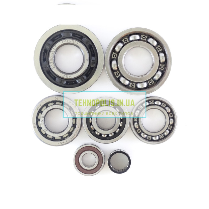 Комплект подшипников КПП ВАЗ модель 2101, 2102, 2103, 2104, 2105, 2106, 2107, Нива 2121, 2130 производства Вологодского и Волжского подшипникового завода (четырехступенчатая КПП).