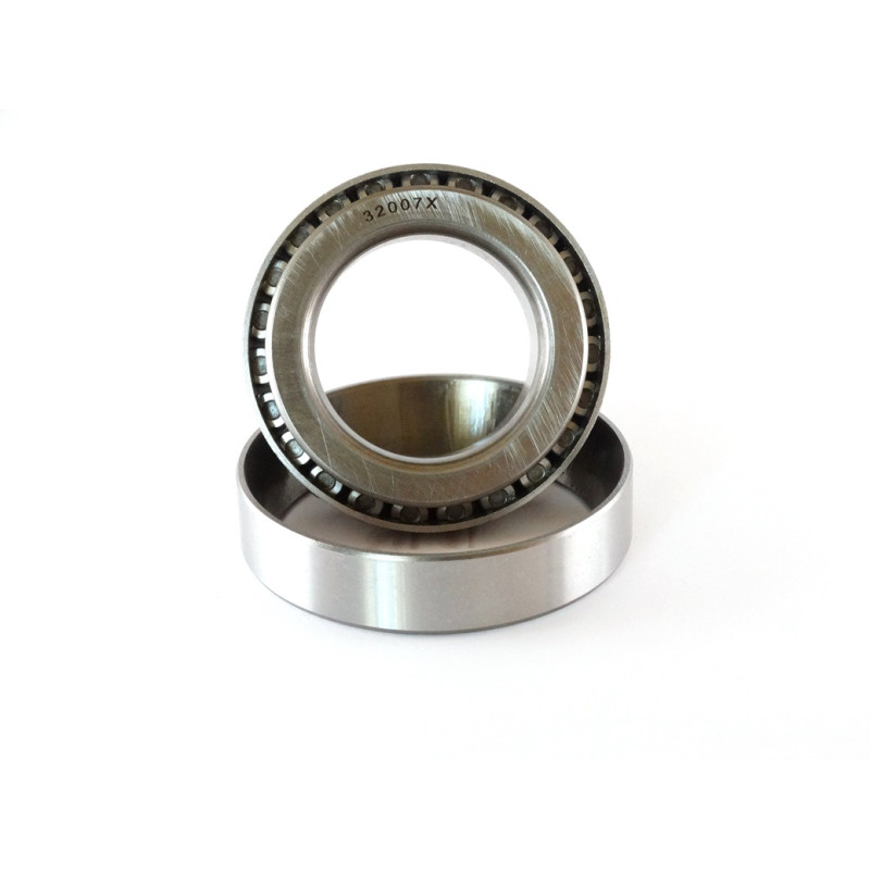 Подшипник 2007107 это роликовый подшипник, который может одновременно воспринимать и радиальную и осевую нагрузку (только в направлении конуса). Подшипник состоит из кольца (меньшего внутреннего) на котором крепится сепаратор (обычно стальной) с роликами конической формы которые и являются телами качения для подшипника. Если подшипники устанавливаются в одной опоре — парой (конусами друг другу), то возможно использование предварительного натяжения в монтаже. Кроме того, при установке подшипника допускается поочередный монтаж колец, что позволяет регулировать осевую игру и зазор.