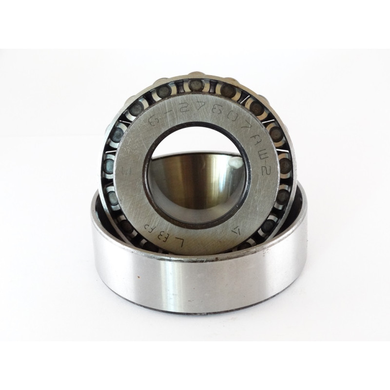 Подшипник 27607 это роликовый подшипник, который может одновременно воспринимать и радиальную и осевую нагрузку (только в направлении конуса). Подшипник состоит из кольца (меньшего внутреннего) на котором крепится сепаратор (обычно стальной) с роликами конической формы которые и являются телами качения для подшипника. Если подшипники устанавливаются в одной опоре — парой (конусами друг другу), то возможно использование предварительного натяжения в монтаже. Кроме того, при установке подшипника допускается поочередный монтаж колец, что позволяет регулировать осевую игру и зазор.