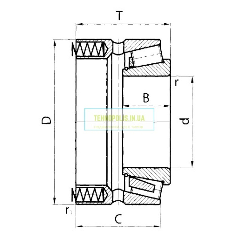 Подшипник качения радиально-упорный роликовый однорядный конический с пружинами на внешнем кольце 4-17814Л, предназначен для эффективной компенсации внушительного усилия продольной направленности и мощных радиальных напряжений. Расчетная величина грузоподъемности, вдвое превышает грузоподъемность аналогичного шарикового подшипника. Допускается работа при ударных нагрузках.