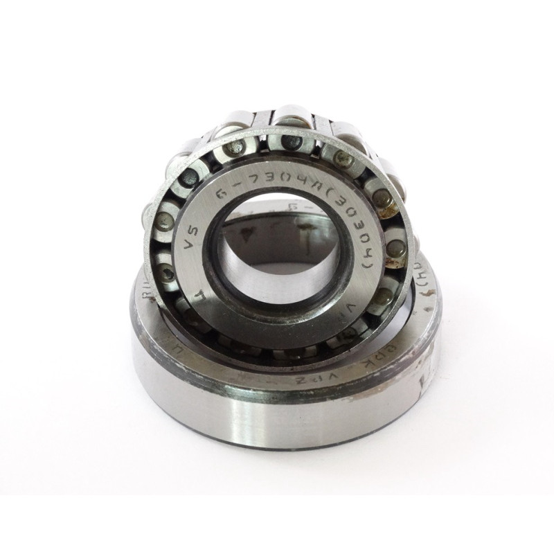 Подшипник 7304 это роликовый подшипник, который может одновременно воспринимать и радиальную и осевую нагрузку (только в направлении конуса). Подшипник состоит из кольца (меньшего внутреннего) на котором крепится сепаратор (обычно стальной) с роликами конической формы которые и являются телами качения для подшипника. Если подшипники устанавливаются в одной опоре — парой (конусами друг другу), то возможно использование предварительного натяжения в монтаже. Кроме того, при установке подшипника допускается поочередный монтаж колец, что позволяет регулировать осевую игру и зазор.