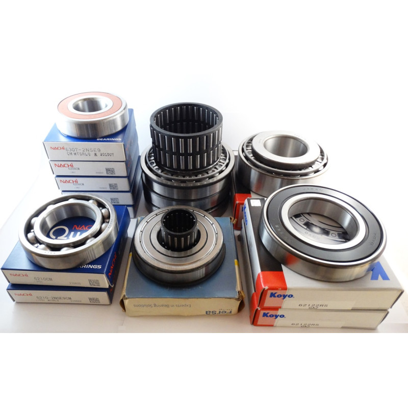 У КПП МТЗ усі кулькові підшипники – стандартні. Тільки один підшипник має проточку під кільце стопорне. Наш комплект включає підшипники Японських виробників (KOYO і NACHI) та Іспанський (Fersa).