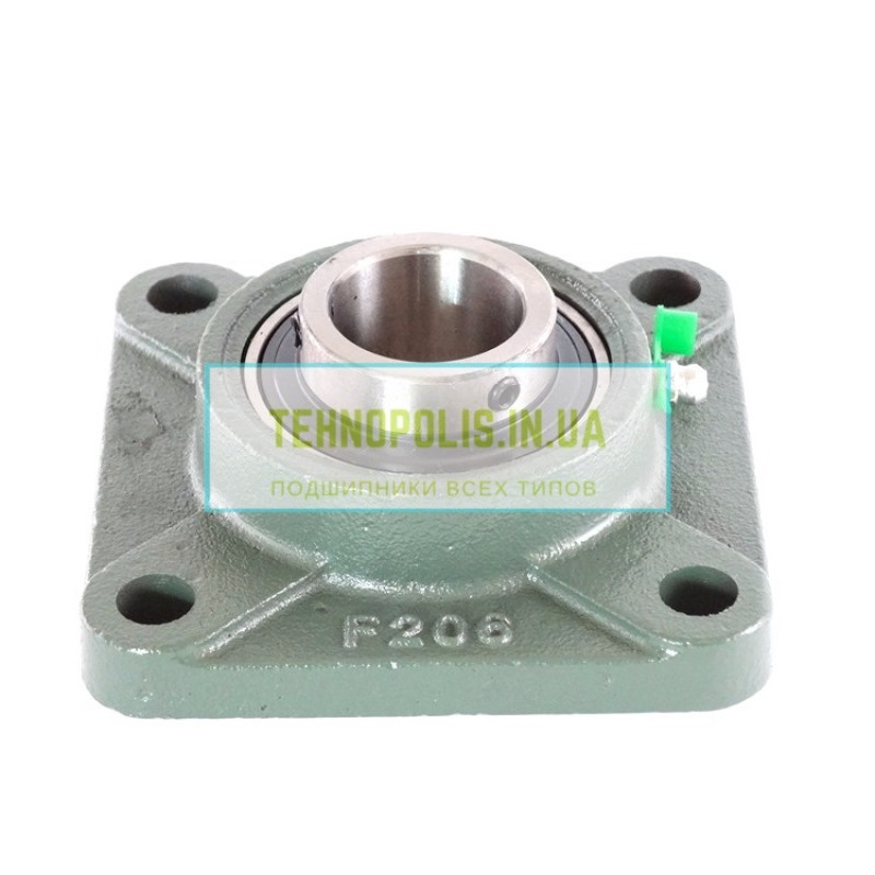 Підшипниковий вузол складається з литого корпуса F 206 і підшипника UC 206. Корпус типу F – квадратний фланцевий корпус який має чотири отвори в кожному куті призначені для кріплення. Корпус вилитий з високоякісного чавуну. Дані підшипник застосовуються в самих різних сферах промисловості: сільське господарство, верстатне обладнання, промислові вентиляційні системи. Деякі споживачі вважають цей підшипниковий вузол упорним. Це не так, даний підшипник також може сприймати тільки радіальне навантаження.