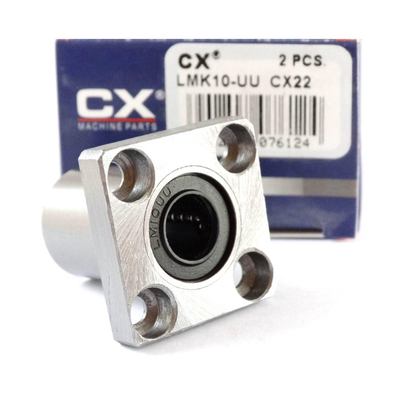 Підшипник LMK 10 UU — це лінійний кульковий вузол із фланцем, призначений для точного переміщення по валу. Він виготовлений відповідно до японського стандарту LM, що забезпечує сумісність із більшістю стандартних напрямних валів.