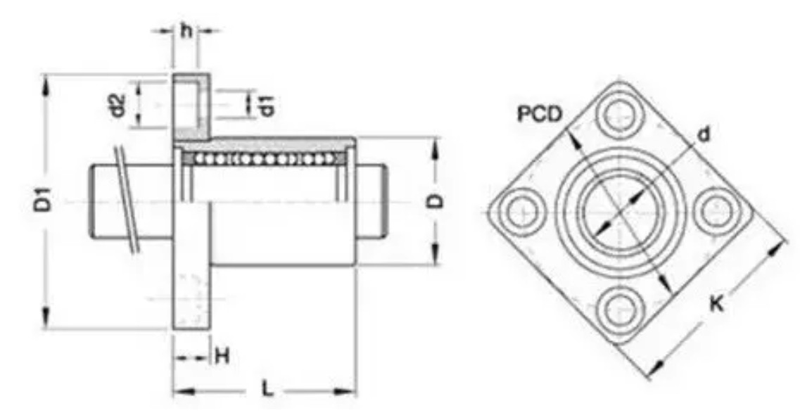 Позначення K означає, що підшипник має квадратний фланець, який дозволяє легко закріпити його на поверхні за допомогою болтів. Такий тип кріплення забезпечує жорсткість конструкції та зручність монтажу.