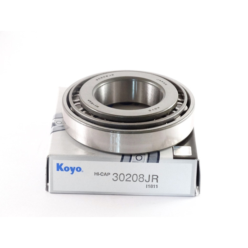 Підшипник 30208JR (позначення по ГОСТу 7208) це роликовий підшипник, який може одночасно сприймати і радіальне і осьове навантаження (тільки в напрямку конуса). Підшипник складається з кільця (меншого внутрішнього) на якому кріпиться сепаратор (зазвичай сталевий) з роликами конічної форми які і є тілами кочення для підшипника. Якщо підшипники встановлюються в одній опорі – парою (конусами один одному), то можливе використання попереднього натягу в монтажі. Крім того, при установці підшипника допускається послідовний монтаж кілець, що дозволяє регулювати осьову гру і зазор.