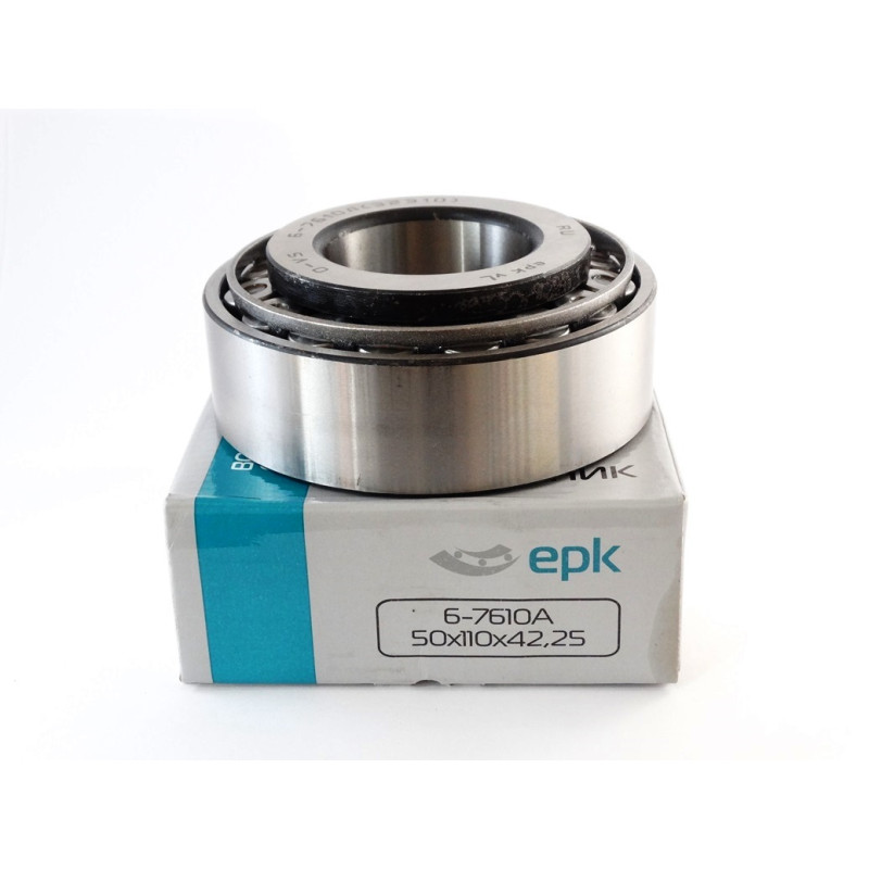 Підшипник 7610 це роликовий підшипник, який може одночасно сприймати і радіальне і осьове навантаження (тільки у напрямку конуса). Підшипник складається з кільця (меншого внутрішнього) на якому кріпиться сепаратор (зазвичай сталевий) з роликами конічної форми які і є тілами кочення для підшипника. Якщо підшипники встановлюються в одній опорі – парою (конусами один одному), то можливе використання попереднього натягу в монтажі. Крім того, при установці підшипника допускається почерговий монтаж кілець, що дозволяє регулювати осьову гру та зазор.