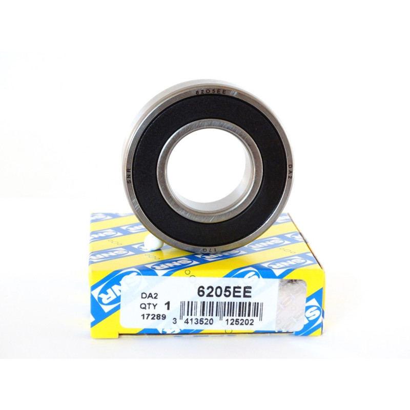 Підшипник 6205 EE SNR, закритий з двох сторін контактними ущільненнями (шайбами). Контактні ущільнення (суфікси позначення EE) виготовлені з бутадієн акрилонітрильних каучуку (NBR), армованого листової сталлю (масло і зносостійкі) забезпечують щільний контакт з виточенням на внутрішньому кільці для підвищення ефективності ущільнення. Підшипник має стандартний тепловий зазор C0.