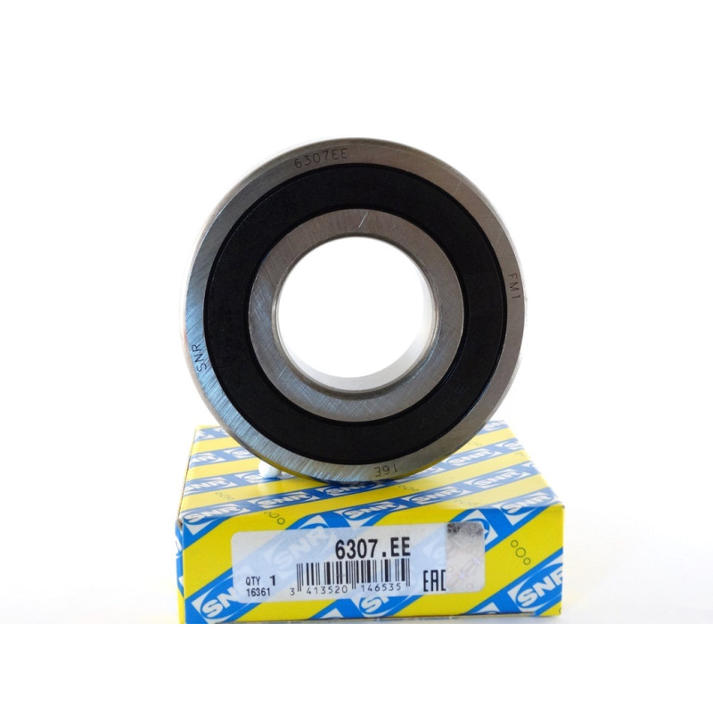 Підшипник 6307 EE SNR, закритий з двох сторін контактними ущільненнями (шайбами). Контактні ущільнення (суфікси позначення EE) виготовлені зі спеціального каучуку, армованого листовою сталлю (масло і зносостійкі) забезпечують щільний контакт з виточенням на внутрішньому кільці для підвищення ефективності ущільнення. Підшипник містить мастило.